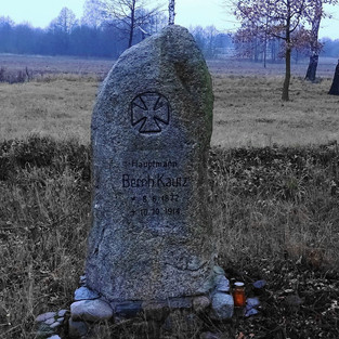 Niespodziewanie kilka lat temu, na jednej z aukcji, udało mi się zdobyć unikatową publikację Maxa Dehnena „Die Kriegsgräber in Ostpreussen von 1914/15”. W wydanej w 1966 r. książce autor przedstawia spisy poległych żołnierzy z miejscami pochówków z początków I wojny światowej. Doskonała jakość posiadanej fotografii pozwoliła mi odczytać nazwiska poległych mężczyzn. Według Dehnena zostali oni pochowani na cmentarzu zwanym „Heldenhaim”, położonym przy drodze na północ od miasta.